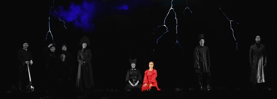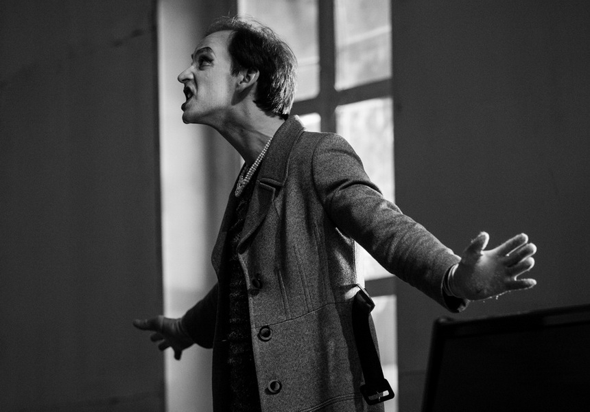 Читая литературу о «Грозе», наткнулся на статью Петра Вайля и Александра Гениса. Не стану скрывать: именно она во многом подсказала решение. Они разбирали Островского, исходя из традиции уличного, площадного фольклорного театра, потому что «Гроза» — она такой, условно говоря, «Царь Максимилиан», где в начале выходит герой и говорит: «Я — паршивая собака, Царь Максимилиан». И таким, собственно, и оказывается на протяжении всей пьесы — ни убавить, ни прибавить. В «Грозе» практически нет развития характеров — это почти лубок. Как только я ощутил жанр, мы и стали в эту сторону двигаться. И как только текст Островского зазвучал не в бытовом решении, он зазвучал фантастически — стал и поэтическим, и метафорическим, и совершенно современным. Он стал слышим, и стало понятно, что спектакль может быть и должен быть театром текста, а не театром ситуации и бытописательства, — это для меня самого было настоящим художественным открытием.
