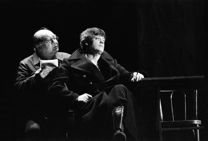 И, конечно, Евгений Павлович Леонов в роли Вожака много внес в этот спектакль личных наблюдений. Ему приходилось общаться с партийными деятелями «всех градаций», и вот он так садился — как в президиум, так переговаривался… И Абдулов родился в этом спектакле — в нем открылась такая черная энергия, не побоюсь этого слова. Это было ценное приобретение и для него, и для театра. Он в Сиплом предстал такой страшной фигурой, которую потом он еще дал в Петре Верховенском в «Диктатуре совести».